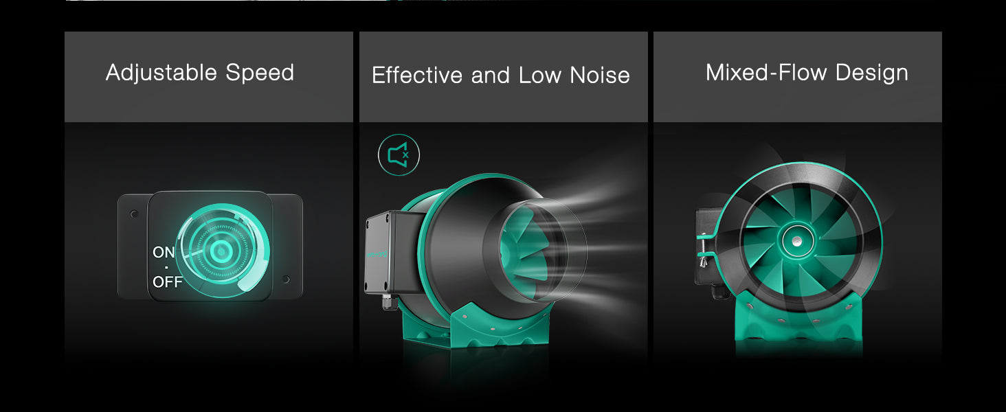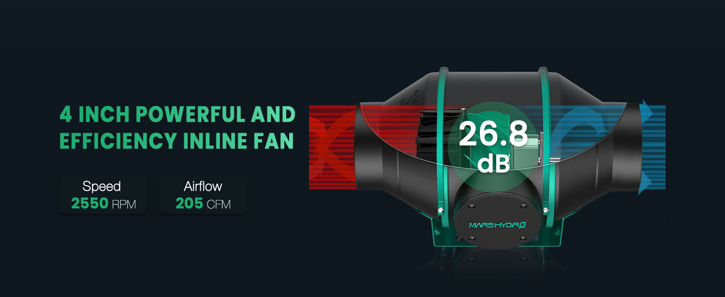 Ventilateur de conduit en ligne Mars Hydro de 4 pouces avec contrôleur de vitesse